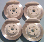 Disc Brake Rotors & Calipers For LeMans Style Race Cars (Set of 4) This brake disc and rotor set is designed to be used on the LeMans style race cars. The set includes: 4- Resin Hubs (w/rivet detail) 4 - Aluminum Disc Rotors. 2 - Resin Front Brake Calipers 2 - Resin Rear Brake Calipers |